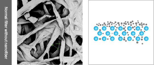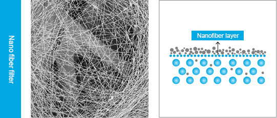 The nanofiber layer covered on the filter substrate significantly reduces the passage of particles, thereby providing greater protection for the motor and its sensitive components |